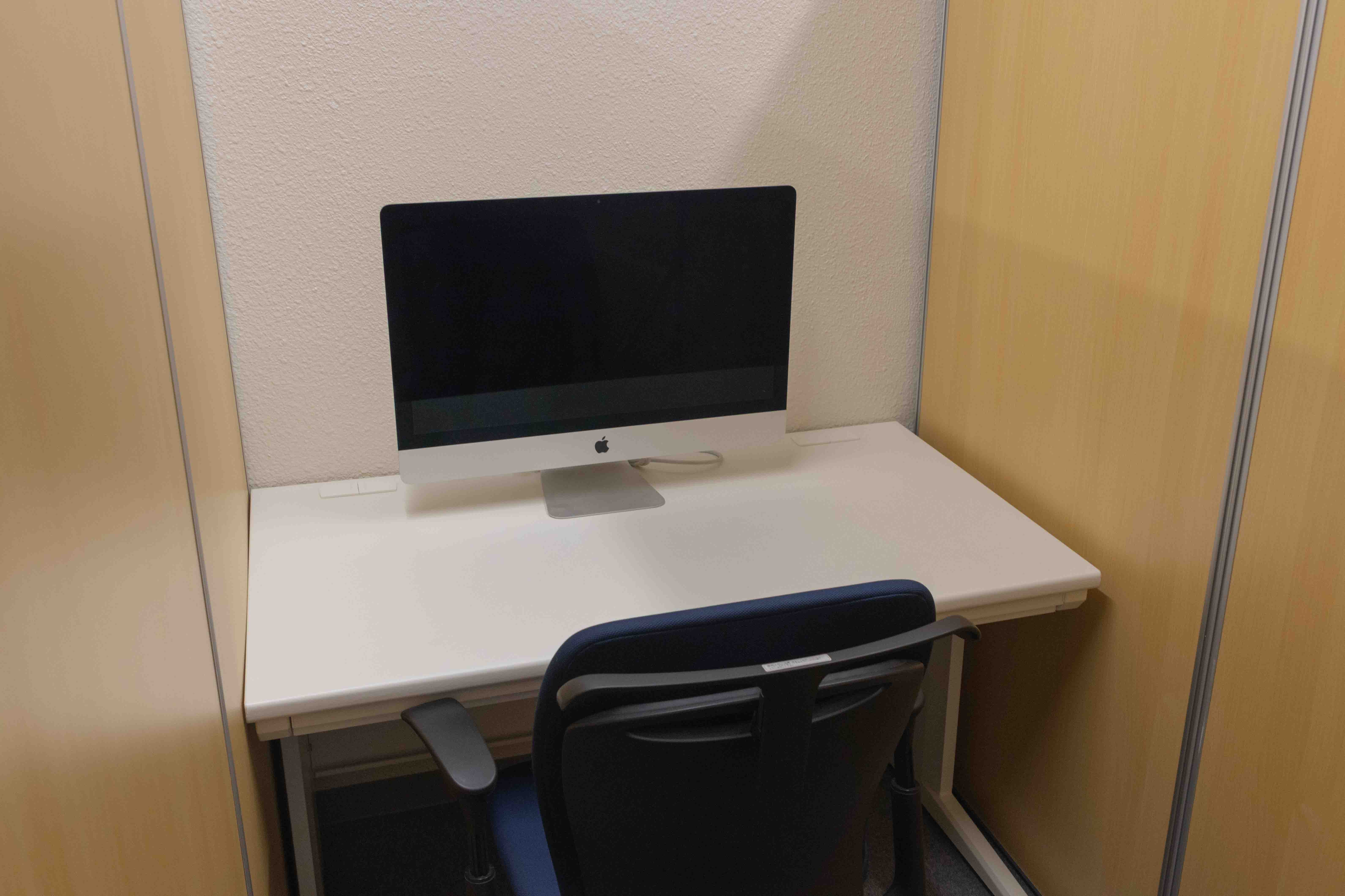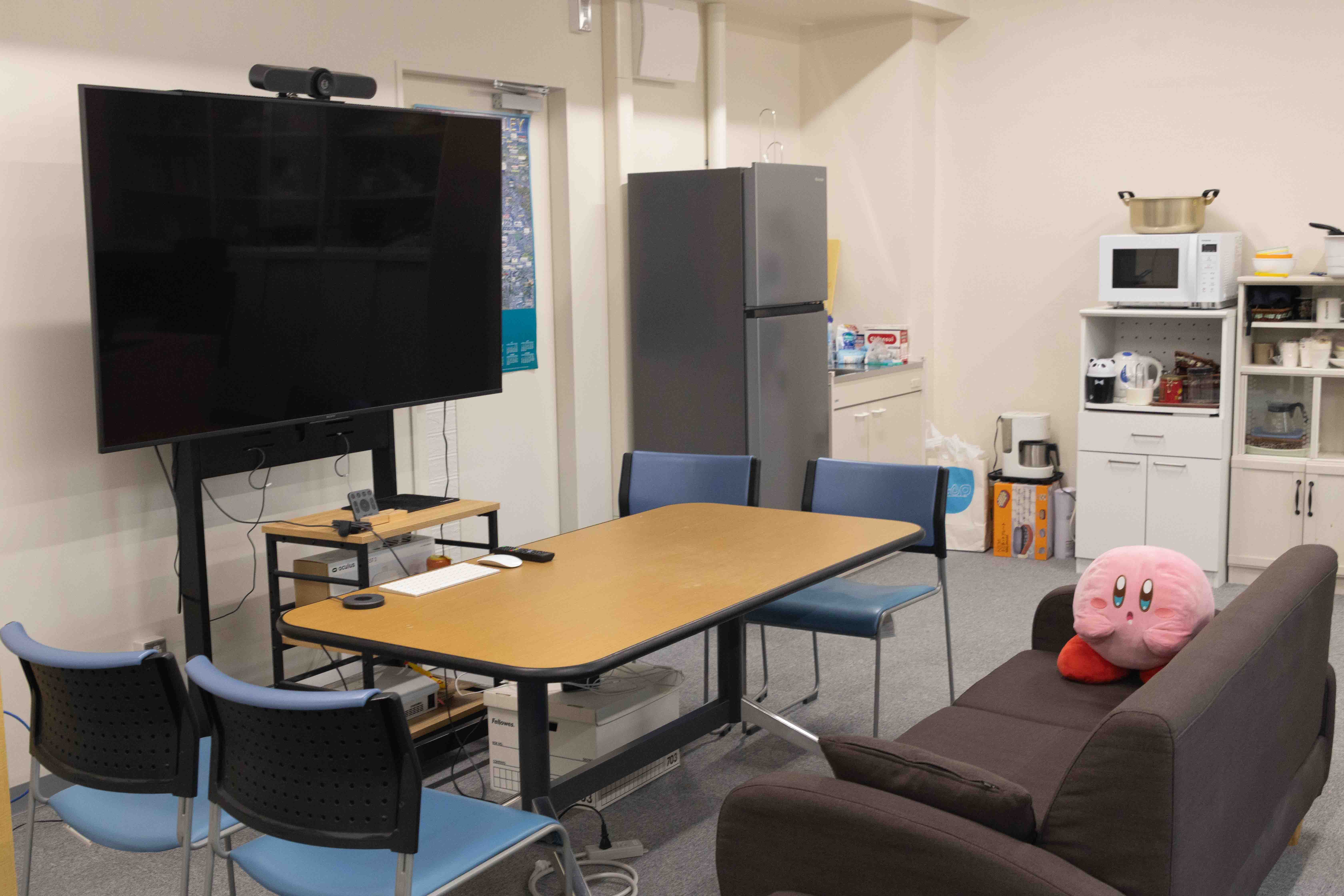 本研究室に配属された学生には,MacBook Proとディスプレイが支給されます.それ以外にも,研究活動を行うための共用設備や生活用品などが利用できます.また,研究室内専用のWi-Fiアクセスポイントの利用権限や,研究室専用のメールアカウントが与えられます.学生用の居室は3部屋あり,そのうち1部屋はWeb会議や面接などでも利用できます.